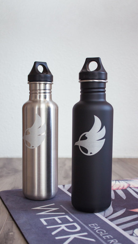In partnership with Klean Kanteen, these water bottles are made with 18/8 stainless steel construction, are BPA Free and lightweight/easy to clean.