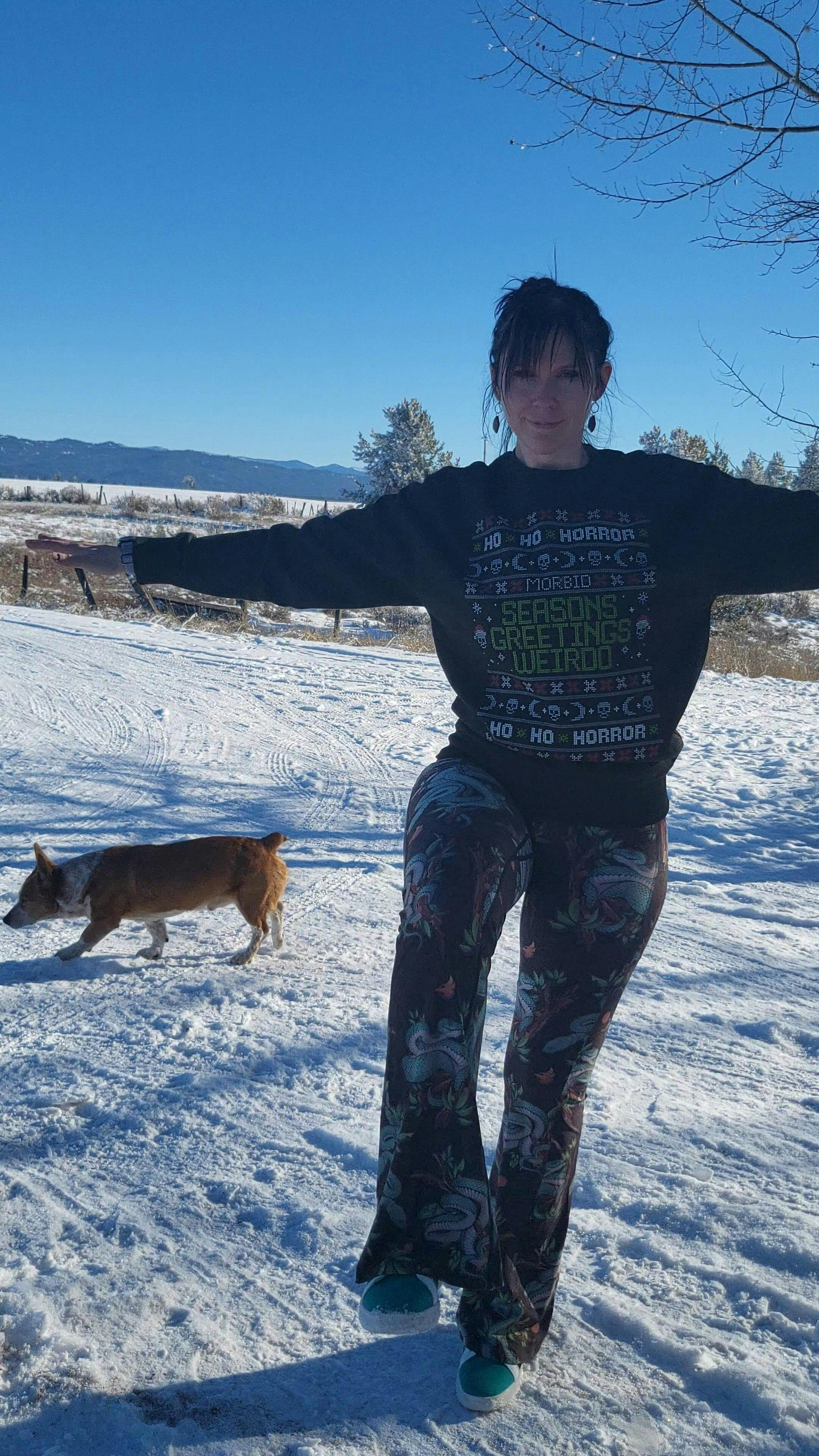 Cheryl is 5'2" with a long torso and usually wears a 28" inseam. Our bells hit the floor on her and would be great to wear with heels. Molly is 5'11" and usually wears a 34" inseam; our bells hit right around her ankle for a fun/slightly cropped look.